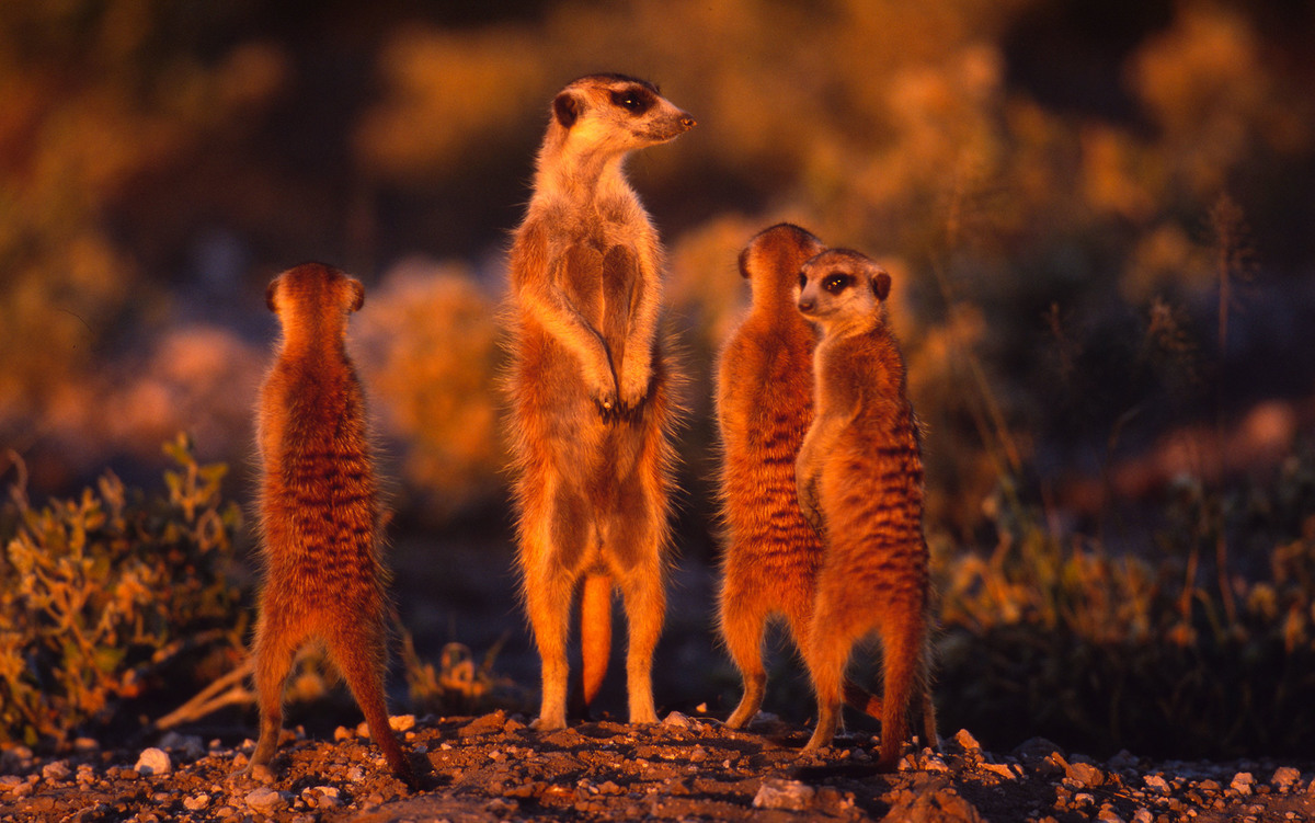 - 昼行性で、2~50頭ほどの群れで暮らす社会性の高い動物です。餌探しや巣作りのために地面に穴を掘るほか、他の動物が使っていた巣穴を利用することもあります。群れでエサを探し、群れの採食中は1頭が見張りを行い、危険を察知すると鳴き声で仲間に知らせます。オス、メスともに肛門をこすりつけるなどしてさまざまなものに臭いをつけてマーキングします。